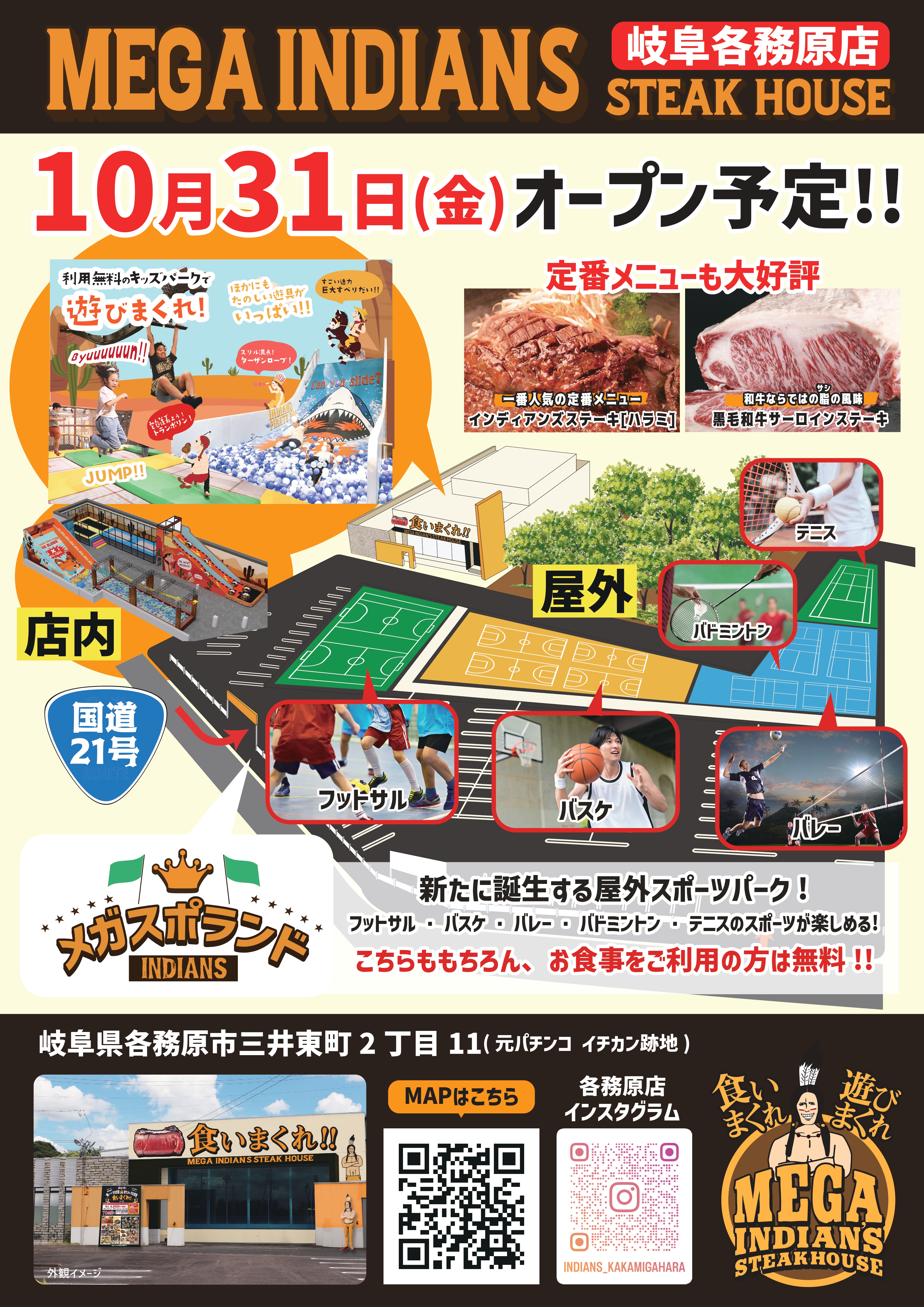 いつもインディアンズステーキハウスをご利用いただき誠にありがとうございます。 9月8日より、メガインディアンズ...